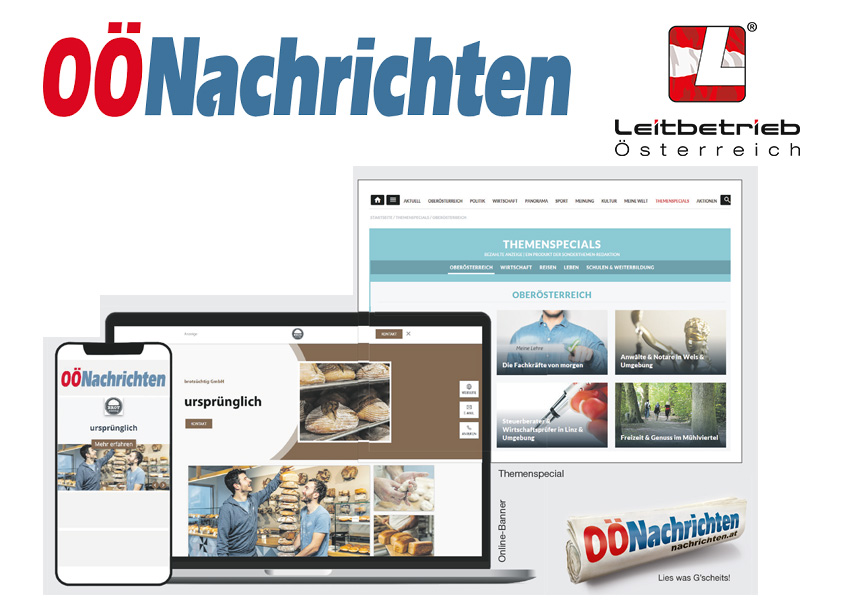 Als Leitbetrieb Österreich erhalten Sie nochmal zusätzlich 20% Rabatt auf Ihre Schaltung. Für die Auftragsabwicklung wenden Sie sich bitte an Ihren Ansprechpartner bei den OÖN: